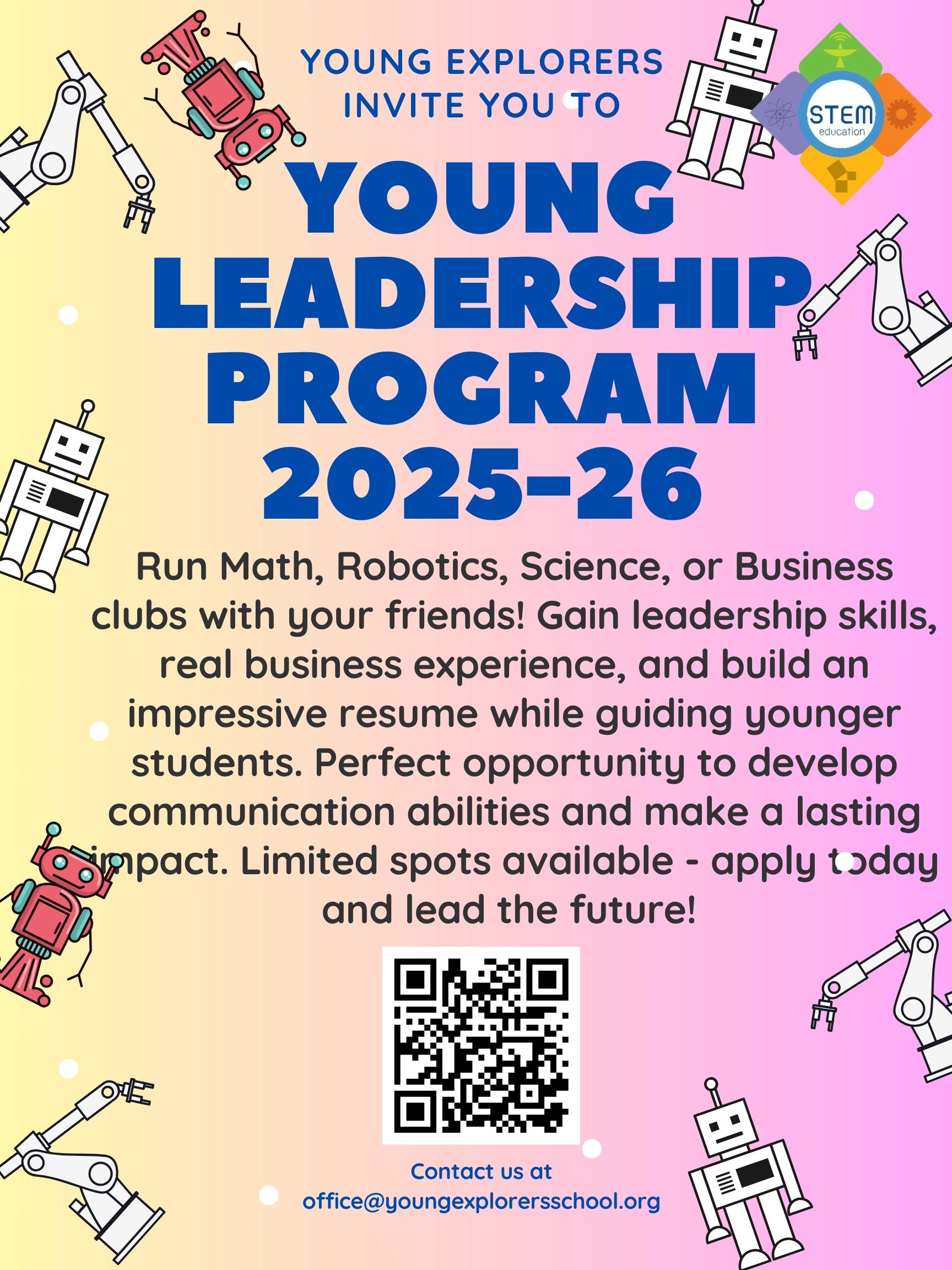 HIGH SCHOOLERS: LEAD THE FUTURE! Ready to turn your passion into leadership experience? We're inviting ambitious high schoolers to lead and run exciting STEM clubs, including Math, Robotics, Science, and Business! Apply today and start making a difference in your community while preparing for your bright future!